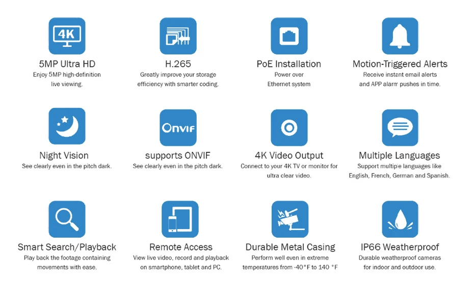 If you are looking for a feature-rich surveillance solution without the complexity that often comes with a robust system, this Anpviz 4/6/8cameras 8-channel IP security camera system is the one for you. It is flexible to choose the quantity of camera according to your need.