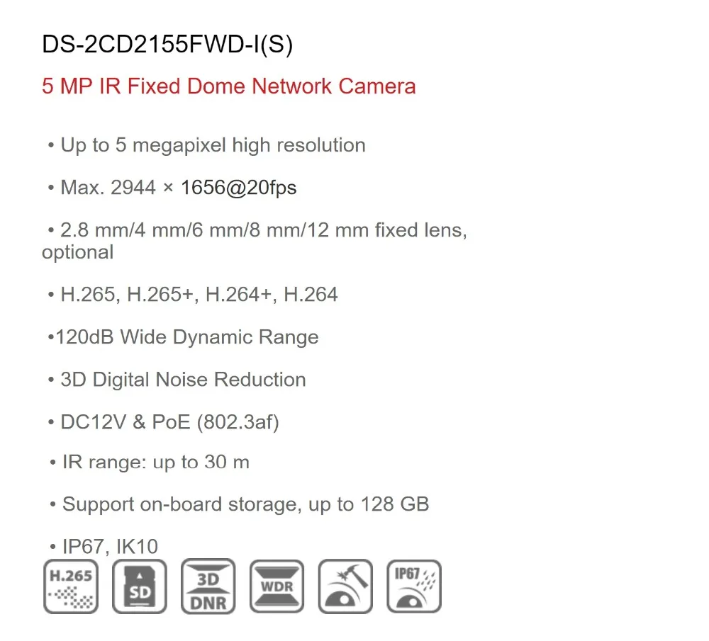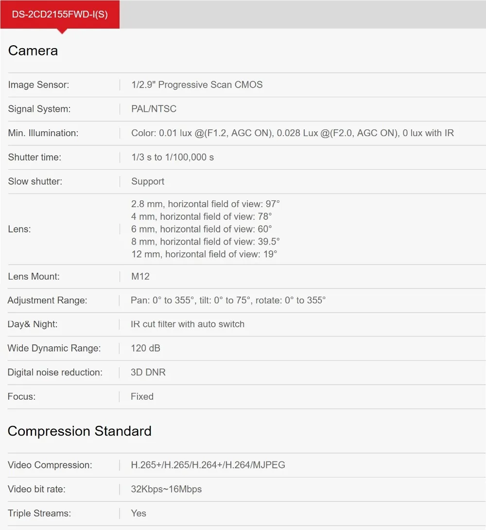- Dome Camera model DS-2CD2155FWD-I , default 2.8mm lens
