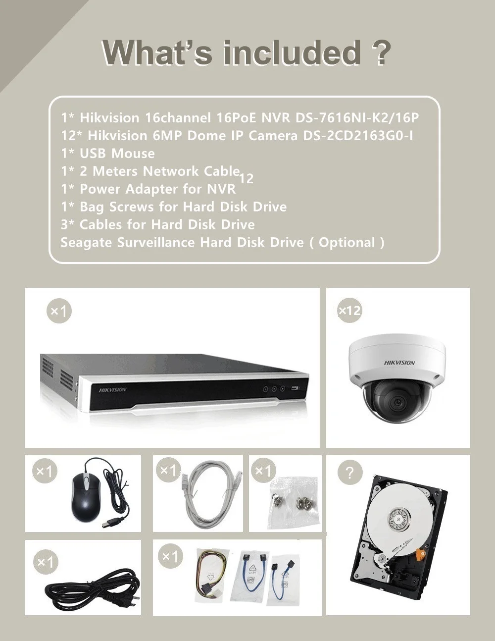 Hikvision Video Surveillance Kits NVR + 12Camera Security Camera 6MP Dome IP Camera IR Fixed Network Camera CCTV Camera H.265
